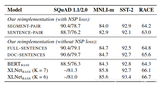 - Specifically, RoBERTA is trained with dynamic masking, FULL-SENTENCES without NSP loss, large mini-batches and a larger byte-level BPE.