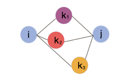 Goal: generate a path between two nodes $i$ and $j$ using intermediate nodes $k$ (Intermediate nodes without adjacent edges to the target nodes are ignored).