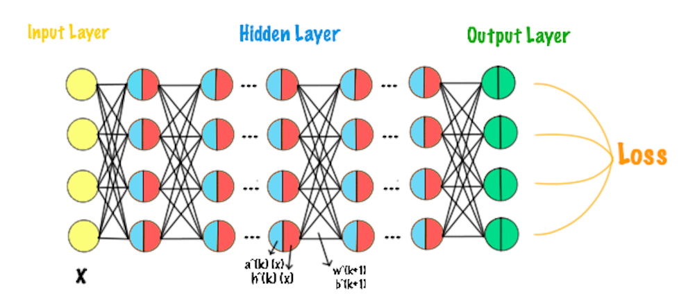 Forward progagation: Compute $a^{(k)}(x), h^{(k)}(x)$, loss.